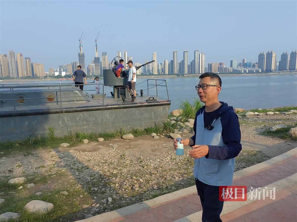 “长江讲坛”讲座之前,极目新闻记者和湖北省图书馆的工作人员一起,陪许路探访汉口江滩,并专访了他。许路说:“在武汉的长江边,我可以代入上世纪30年代艾里克船长,从这里驾驶中式帆船出海的场景。”