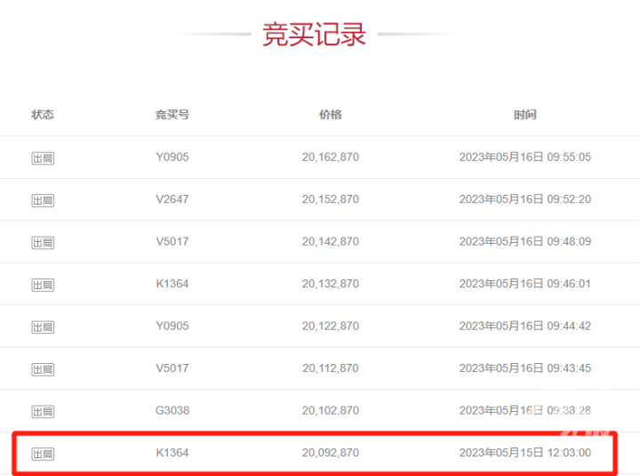 今天上午9点38分,距离拍卖结束前(不延时情况下)半小时不到,报名人数已经达到了7人,大家开始你争我夺,原先平静的局面瞬间变得紧张起来。
