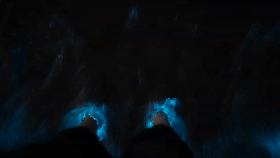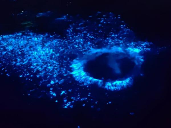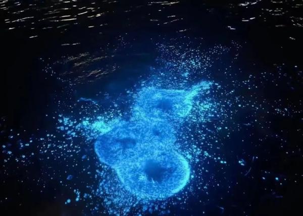 在合适的环境条件下,夜光藻细胞生长达到一定密度时,在夜晚就会因为扰动等刺激而发出荧荧蓝光。