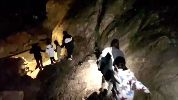 但不少“追泪者”视而不见,纷纷翻越木栅栏,沿着陡峭、曲折的崖壁小路,来到石滩。整个过程,非常惊险,稍一不留神,就会滑下山去。