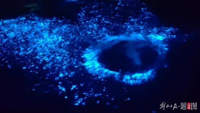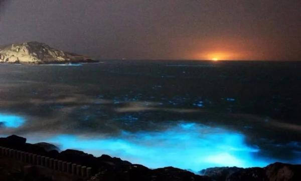 椒江大陈岛连续数晚罕见出现大片“荧光海”。图源:椒江发布