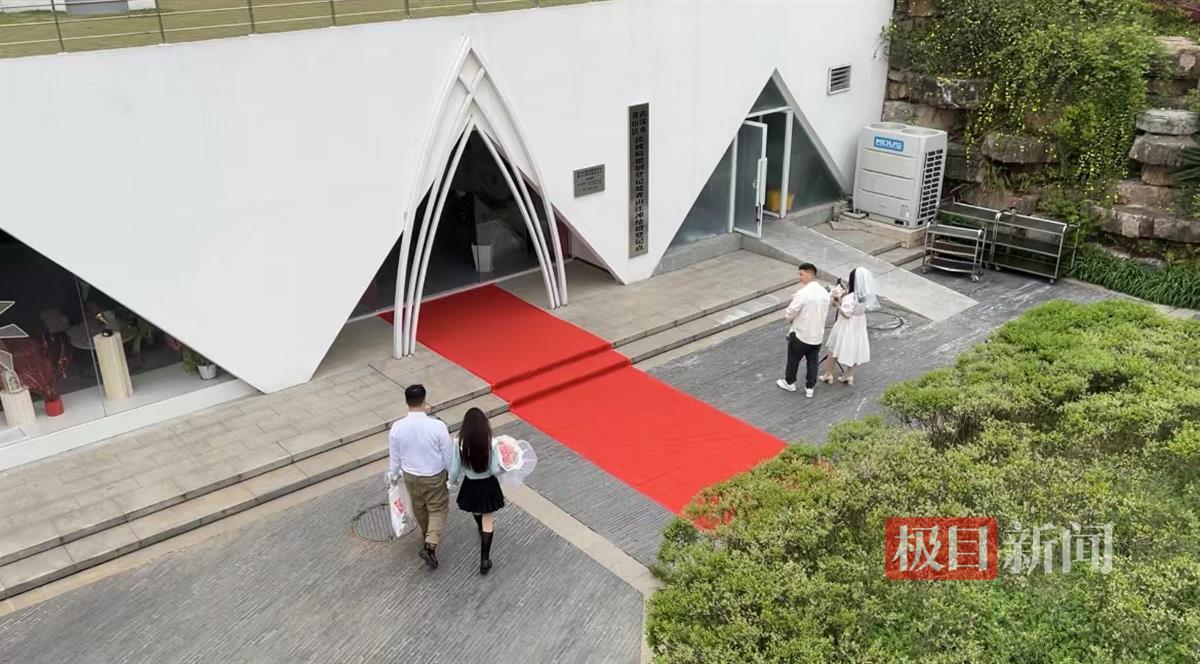 在婚姻登记处,头戴白纱、手捧鲜花、举着“红本”,让专业摄影师拍照记录,已成为年轻人结婚领证的新潮流。极目新闻记者在大众点评搜索看到,武汉不少摄影工作室、照相馆都提供领证跟拍服务。