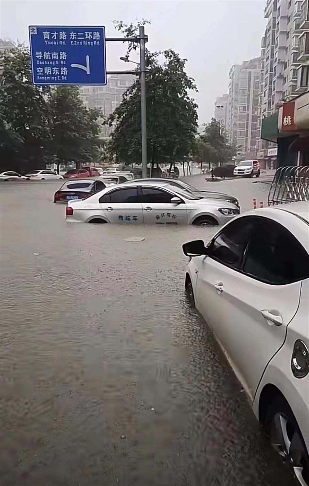 多辆车泡在水中 (视频截图)