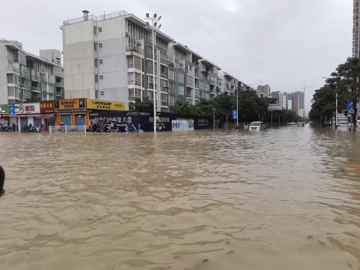桂林街头积水严重 (视频截图)