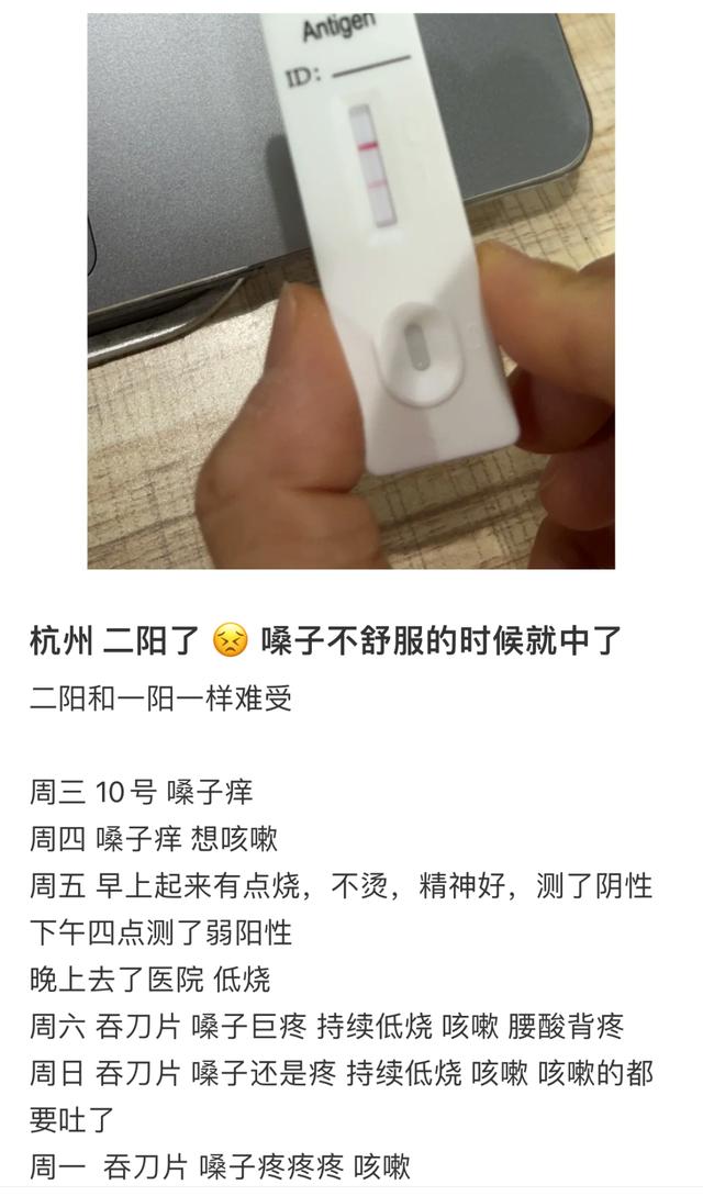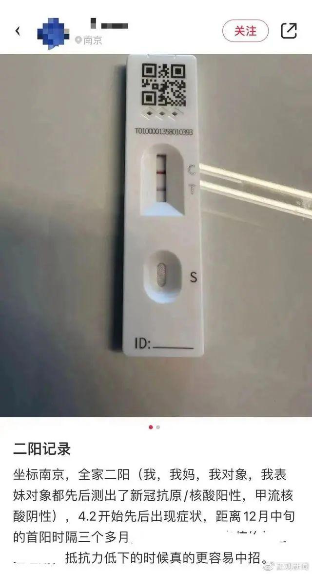 不少人在网上晒出显示阳性的抗原,称“二阳”后仍出现鼻塞、咳嗽、味觉消失等情况,但比第一次症状要轻。
