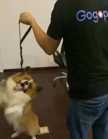 Gogopet员工正带一只金毛锻炼