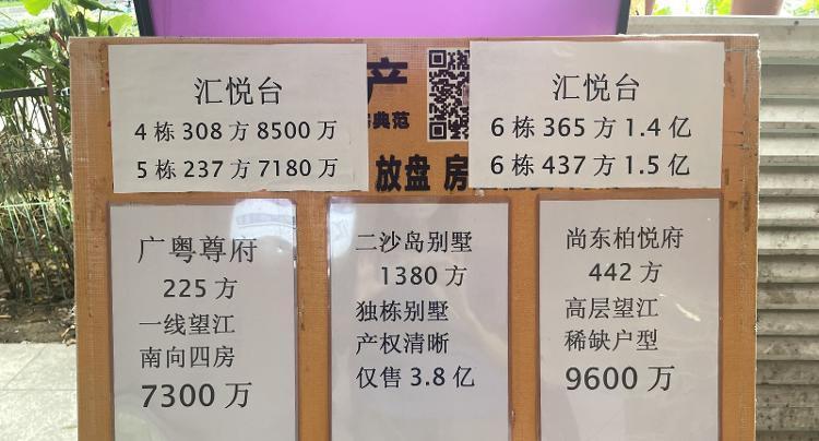 其中三家房地产中介都在门口贴出了汇悦台的房源信息。记者注意到,在中介公司的标价中,六栋(即419号楼)的单价是最高的,其中与此次拍卖住宅位于同一栋且面积相同的房源标价为1.4亿,高于此次拍卖的成交价格;另一家展示出与此次拍卖住宅相同面积(楼栋不详)的房源标价则为1.1亿,与本次拍卖的成交价格基本一致。