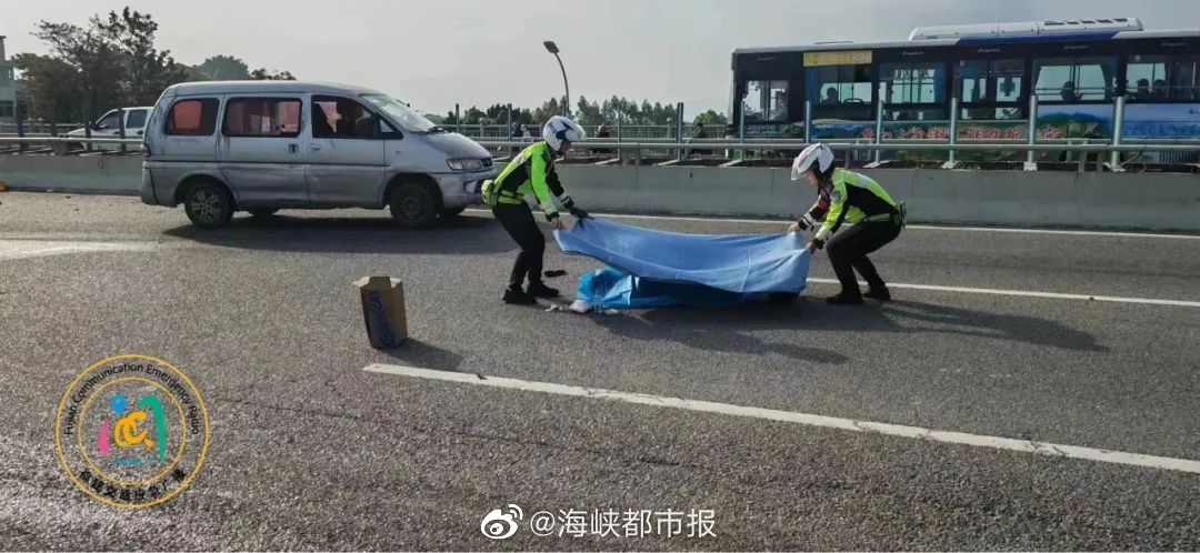 今天(5月25日)上午,有市民报料称,今早6:30分左右,福州湾边大桥发生一起交通事故。记者从非机动车道上桥抵达事故现场观察到,拖车、吊车正在对事故车辆进行施救,在侧翻的厢式面包车前方,一名男子躺在路面上,身上盖着一块蓝布。