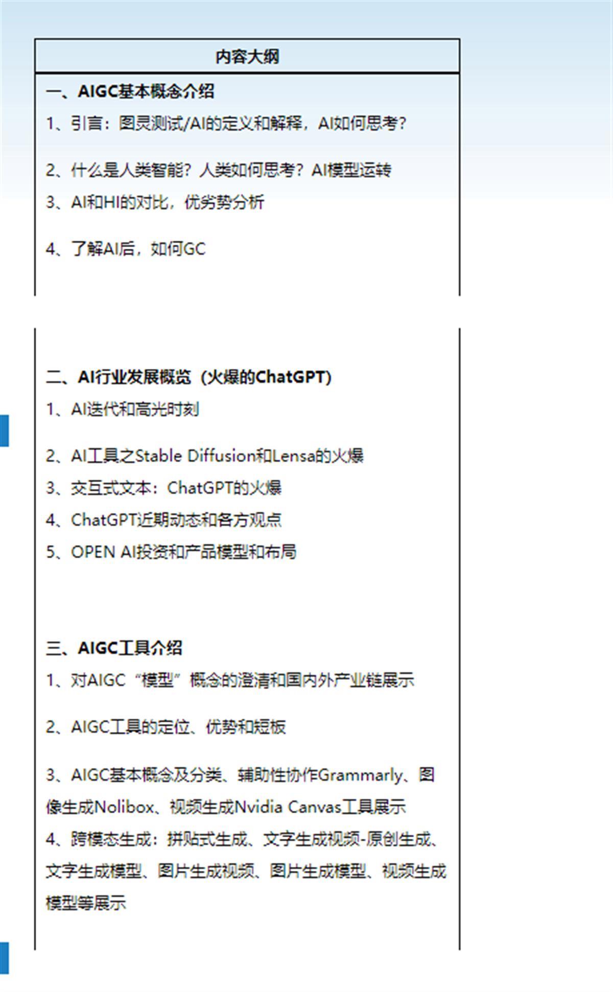 在吴先生发来的授课大纲上,极目新闻记者看到,3天的课程中,前两天的授课内容为AIGC基本概念介绍以及AI行业发展介绍,第三天课程中仅有一部分为生成模型的展示应用。