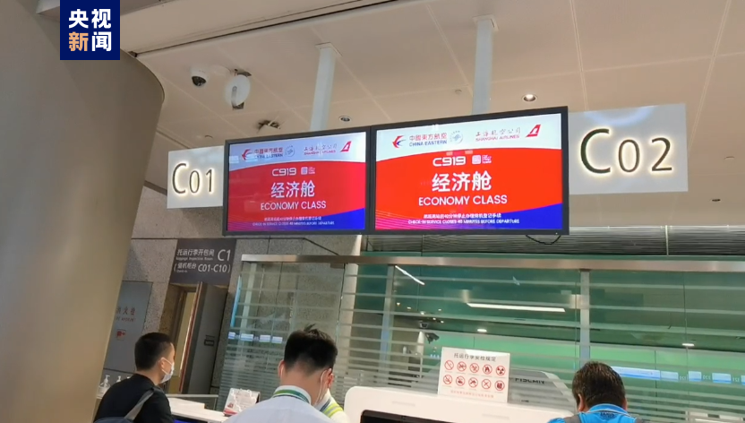 C919大型客机首航航班开始办理值机。
