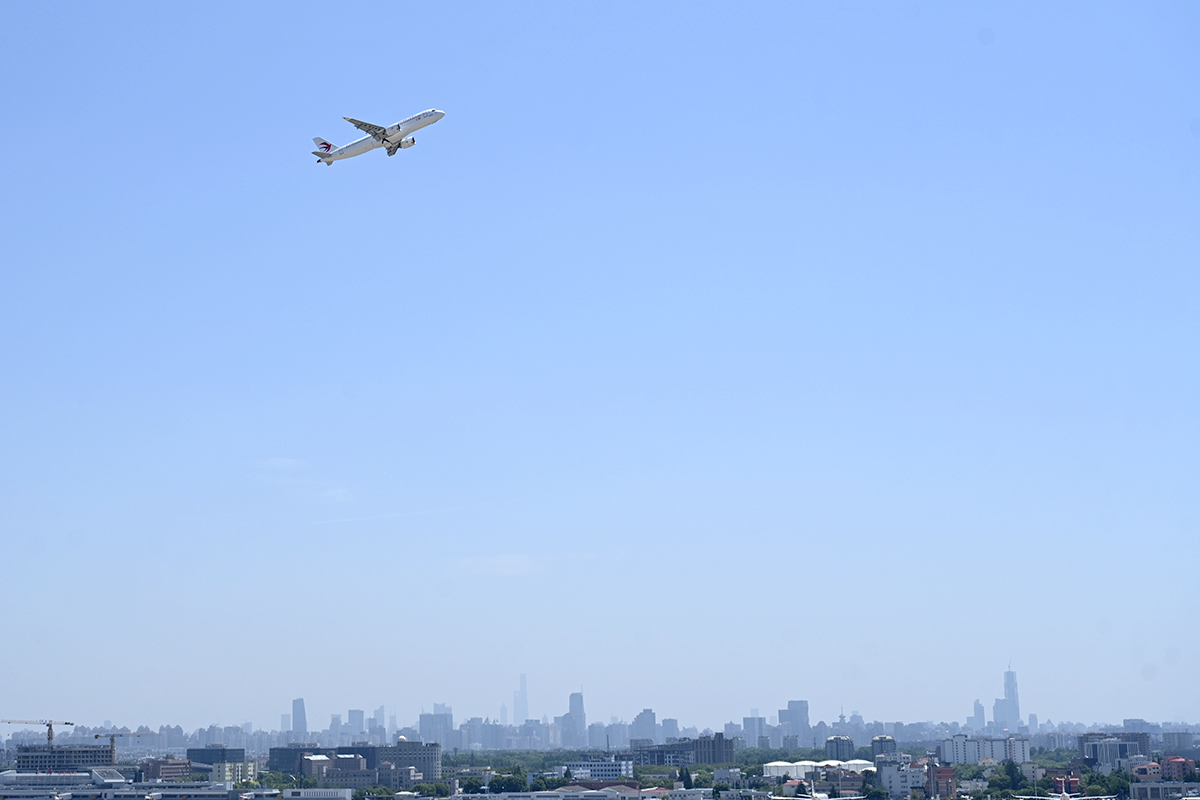 5月28日上午10点45分,C919客机从上海虹桥国际机场起飞,开启商业首航。澎湃新闻记者朱伟辉图