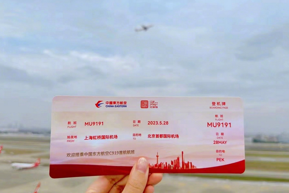 C919客机商业首飞选的是东方航空公司的上海到北京航线。具体来看,飞机计划2023年5月28日上午10点45分从上海虹桥机场起飞,下午1点10分抵达首都机场,计划飞行时长2小时25分钟。返程航班是下午2点50分起飞,5点15分到达。据报道,从上海虹桥机场飞往北京首都机场的首次商业载客飞行,载客约130余名。