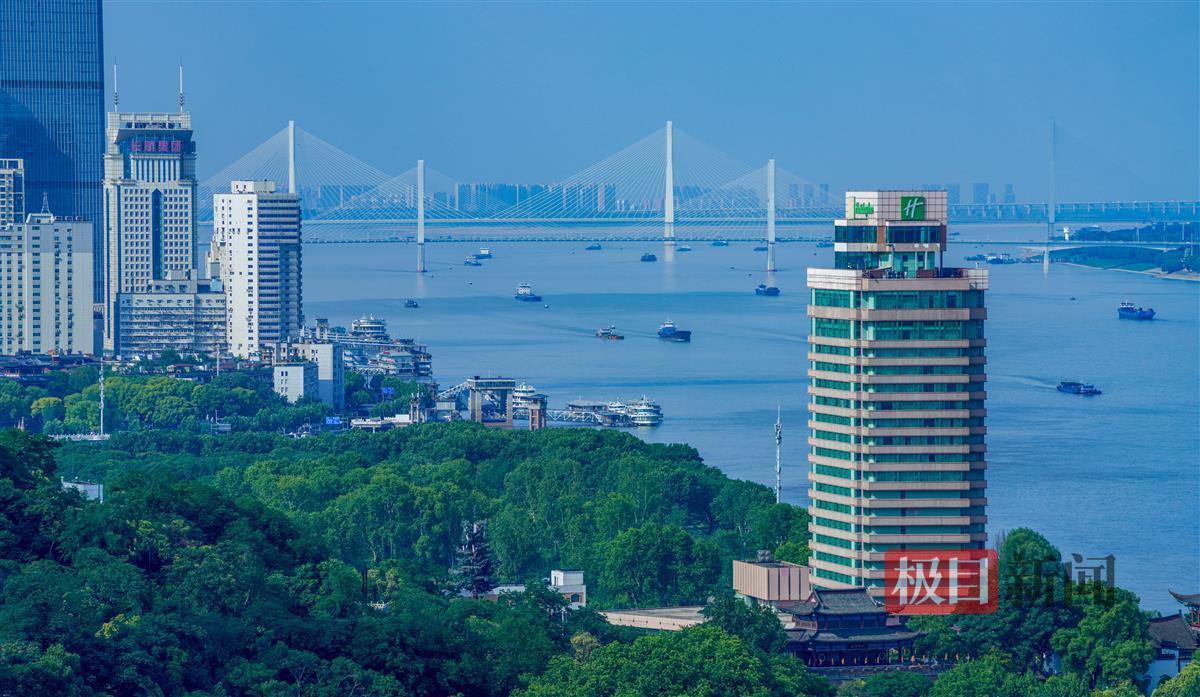 当天下午,极目新闻记者在汉阳莲花湖旁边的寰宇天下楼上看到,龟山电视塔、长江大桥、前川假日酒店、黄鹤楼、绿地606、长江二桥、二七长江大桥、鹦鹉洲长江大桥等地标尽收眼底。
