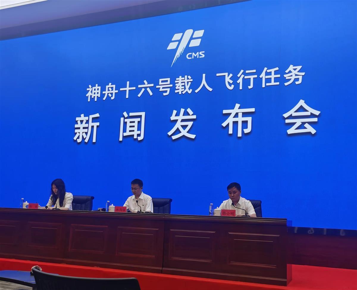神舟十六号载人飞行任务新闻发布会现场(记者詹钘拍摄)