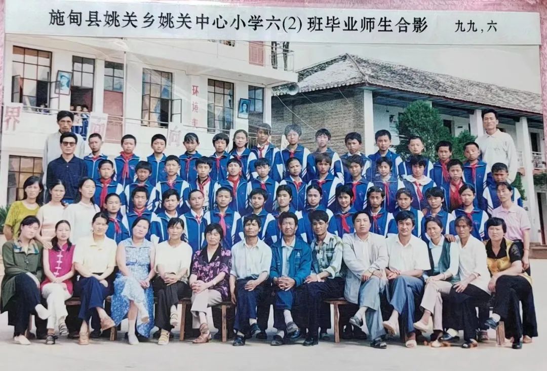 澎湃新闻注意到,5月29日,施甸县委宣传部微信公众号还公布了桂海潮从小学到高中的毕业照,其中在拍摄初中毕业照时,桂海潮似乎在一旁同学的下巴处比了一个“V”字。