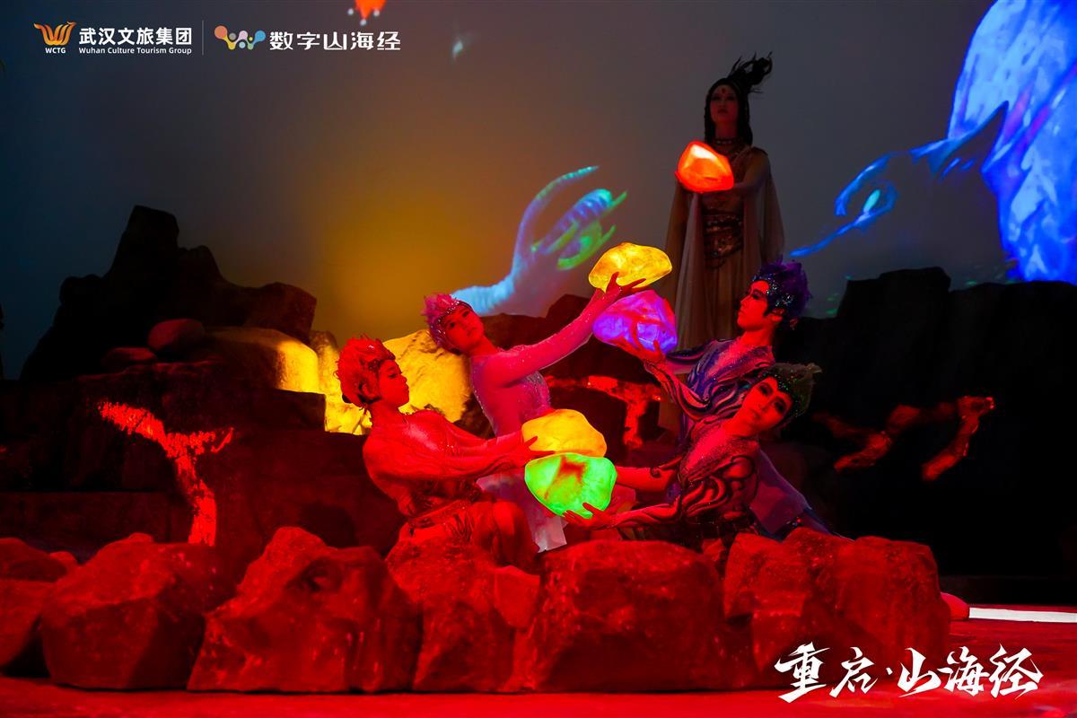 《重启·山海经》由武汉文化旅游集团有限公司联合山水盛典文化产业股份有限公司倾力打造,由中国山水实景演出创始人、国家一级编剧、著名导演梅帅元执导,以上古奇书《山海经》为蓝本,构建了一个平行时空元宇宙剧场,连接上古神话的过去和科技世界的未来。