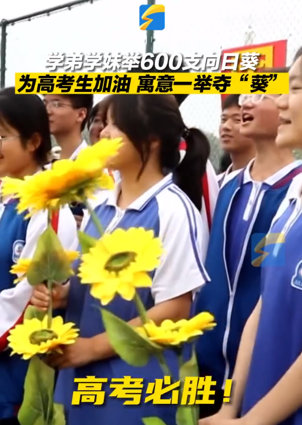 据闪电新闻报道:6月5日,山东菏泽定陶区第一中学高一高二的学生们在操场上高举600支象征着“一举夺魁”的向日葵,手持祝福标语,为即将奔赴考场的高三学生们加油鼓劲。老师还把学科知识点巧妙融进祝福话语,为高考生送上印象深刻、别具一格的祝愿。高考加油!必胜!