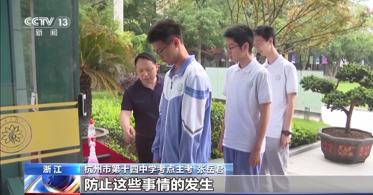 杭州市第十四中学考点主考张岳君:两次安检的目的就是保护孩子,因为有的孩子可能一不小心把手机带入考场,忘掉了,或者把电子产品带入考场,通过两次安检后,防止这些事情发生。