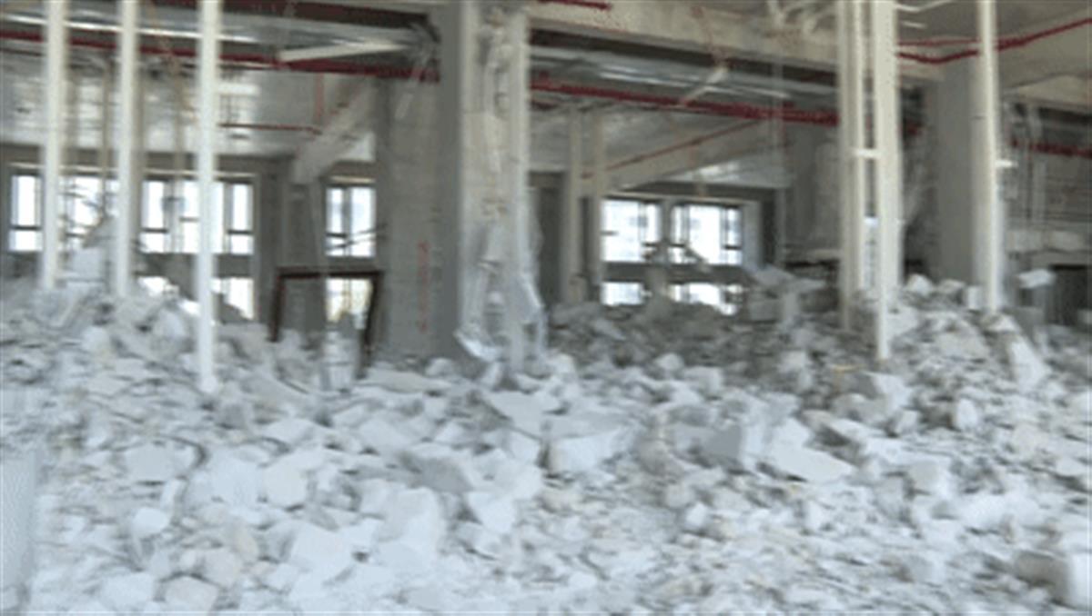 6月4日,记者来到肇庆四会市吾悦广场悦公馆2栋公寓,在二楼位置看到,现场真的可以用“满目疮痍”来形容,多面墙体被打掉,多条柱子被截断,裸露出钢筋。