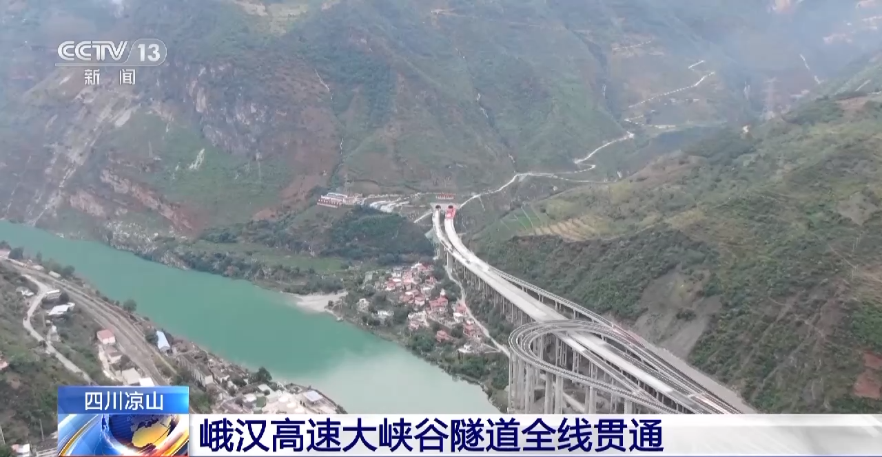 总台记者 蒋林:峨汉高速在穿过大峡谷隧道之后,将会继续沿着我身后的大渡河峡谷在横断山脉当中穿行,预计在今年10月份,峨汉高速就将全线建成通车,未来它将会成为国家高速公路网络中,连通G5京昆高速公路和G93成渝环线高速的一条重要的连接线,助力大峡谷地区和凉山州的经济发展。