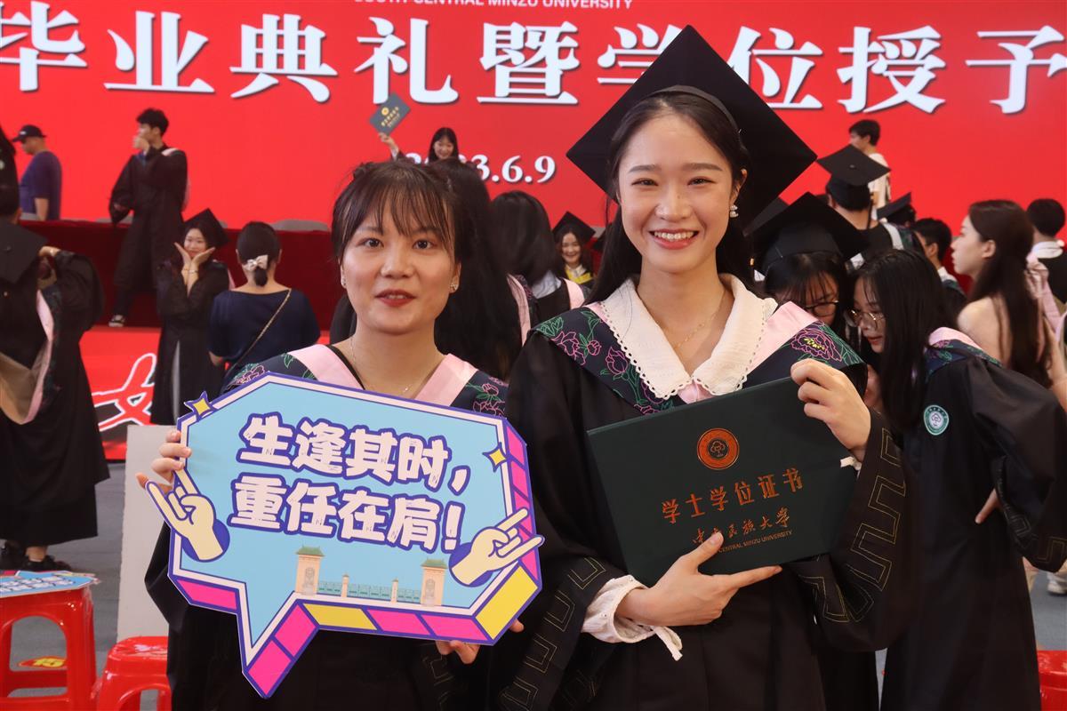 随后,党委副书记、副校长宋发军教授宣读《关于表彰中南民族大学2023届优秀毕业生的决定》《关于聘任2023届毕业生“年级校友理事”“校友联络员”的决定》,学校领导为毕业生代表颁发毕业证书,为“年级校友理事”“校友联络员”代表颁发聘书。学校学位评定委员会主席、副校长段超教授宣读学位授予文件。