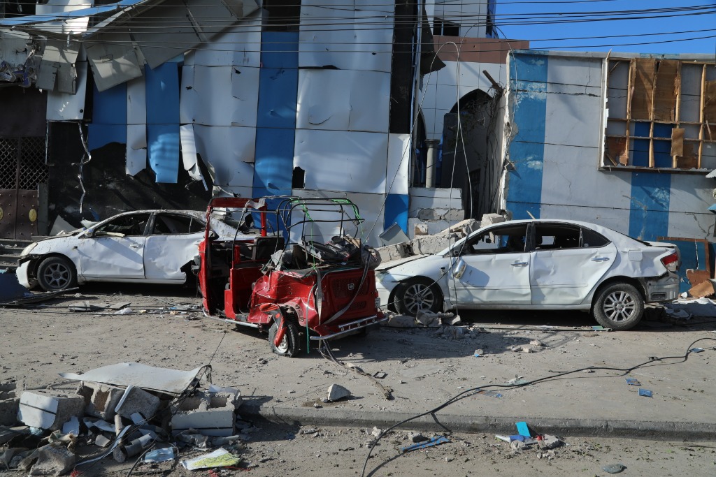 这是2022年10月30日在索马里首都摩加迪沙拍摄的爆炸现场。索马里“青年党”声称发动此次袭击。新华社发(哈桑·巴希摄)