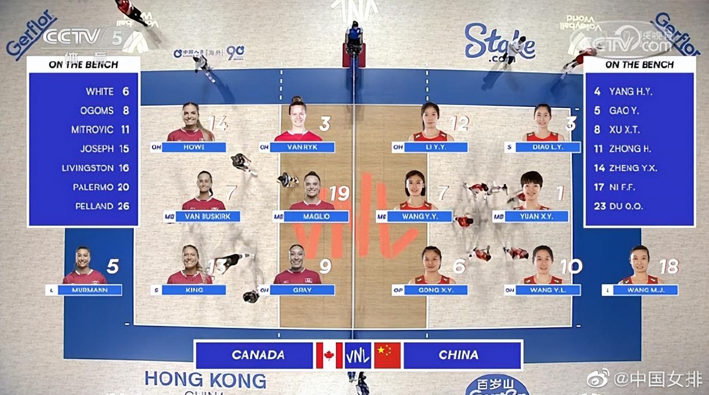 6月13日,2023年世界女排联赛第二周中国香港站,中国女排3比0加拿大女排,取得五连胜,三局比分为25-14、25-18和29-27。