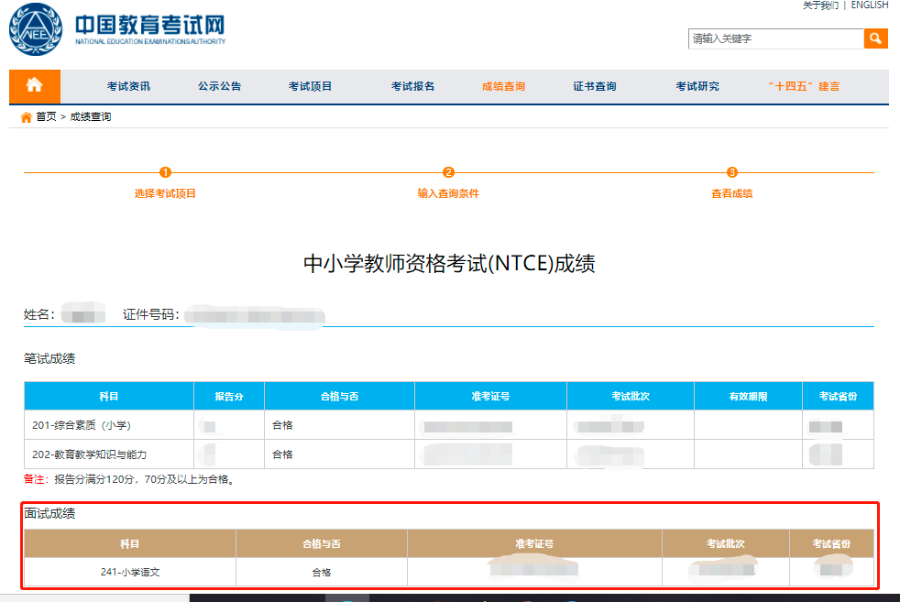 成绩页面会显示笔试、面试成绩显示合格字样就通过考试了!