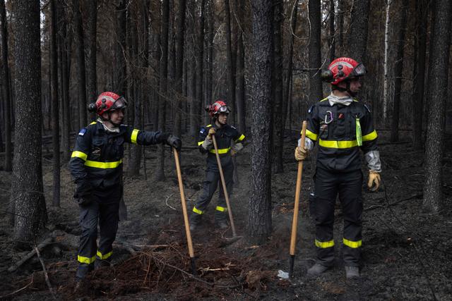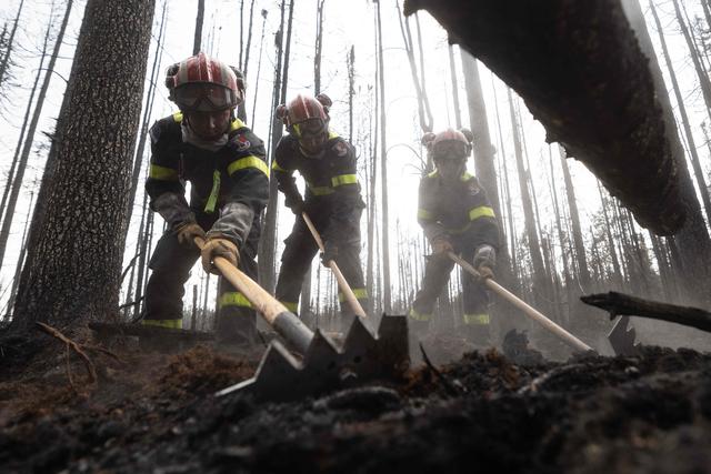6月12日,在加拿大魁北克地区,法国消防员帮助灭火。新华社/法新