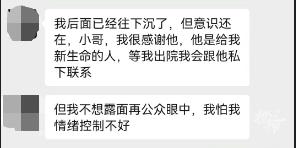 她说,跳下去后,感觉到“自己已经往下沉了,我意识还在,小哥,我很感谢他,他是给我新生命的人……“