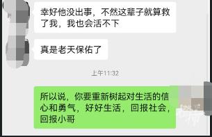 “真是麻烦你们了”,她对小哥和民警来救她,很感激又难为情不好意思,“幸好他没事,不然这辈子救了我,我也活不下去了。“真是老天保佑”。