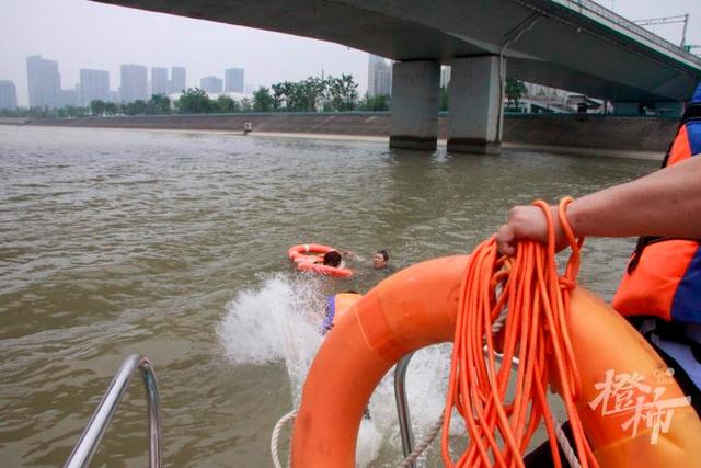 “因为速度太快靠近,会给他们造成冲击”,刘朝玉让快艇速度放慢,1:17,水警快艇到达落水女子附近位置,“距离落水者大约5米左右位置”,早就穿好救生衣的刘朝玉一个跨步,从甲板上飞身跃入江中,甲板距离水面大约3米左右,随后队员扔给他一个救生圈。
