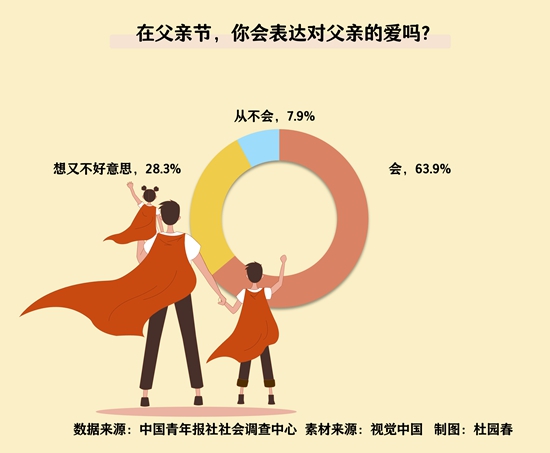 63.9%受访青年会在父亲节表达爱,28.3%想表达但不好意思