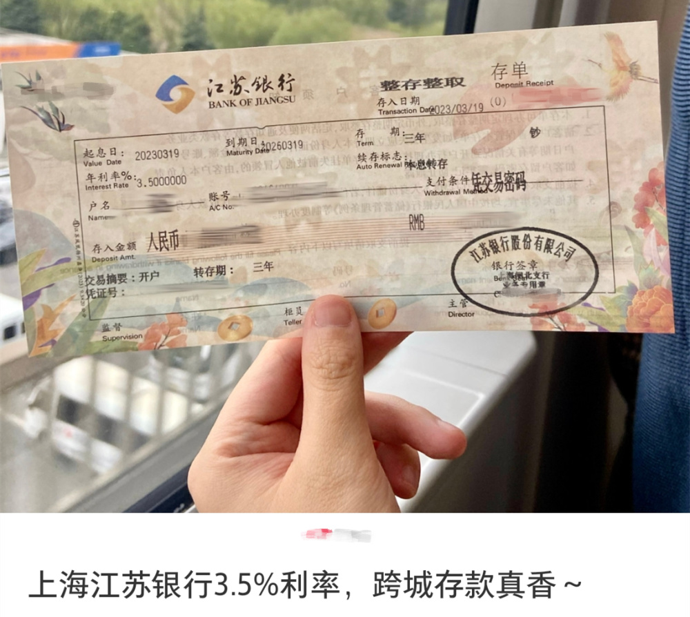 网友:跨省存款30多万,不到70元路费利息多了近3000元
