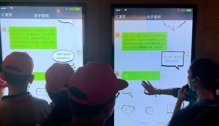 孔子博物馆在展陈设计上颇费心思,利用多媒体、智能移动终端等形式,融入游戏,使观众在逛展中可以沉浸式体验儒家文化的魅力。观众可以在互动屏上查询祭祀孔子用到的各种乐器,还能戴上耳机现场倾听。在“夫子问答”交互虚拟体验中,观众可以通过一个大型的触控屏幕,便可“穿越时空”与夫子对话,听其答疑解惑。