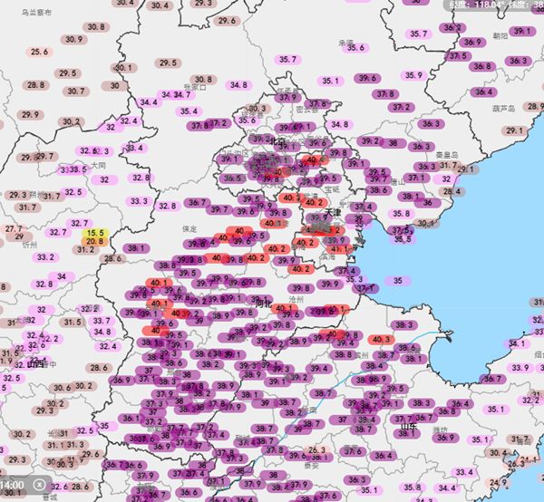 又双叒叕破纪录了!今天午后,在京津冀出现大范围38℃以上高温天气。尤其是北京南郊观象台,天津西青以及天津武清、河北廊坊、河北霸州等站点截至14时,连续三天(6月22日-6月24日)出现40℃以上高温天气。