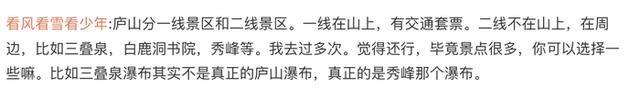 也有网友指出,庐山有很多外围景区,如果只看核心景区,其实费用还可以。