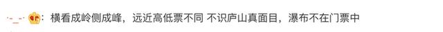 有网友改编李白的《望庐山瀑布》:横看成岭侧成峰,远近高低票不同,不识庐山真面目,瀑布不在门票中。有网友表示,自己去过庐山,对景区门票的混乱印象深刻。