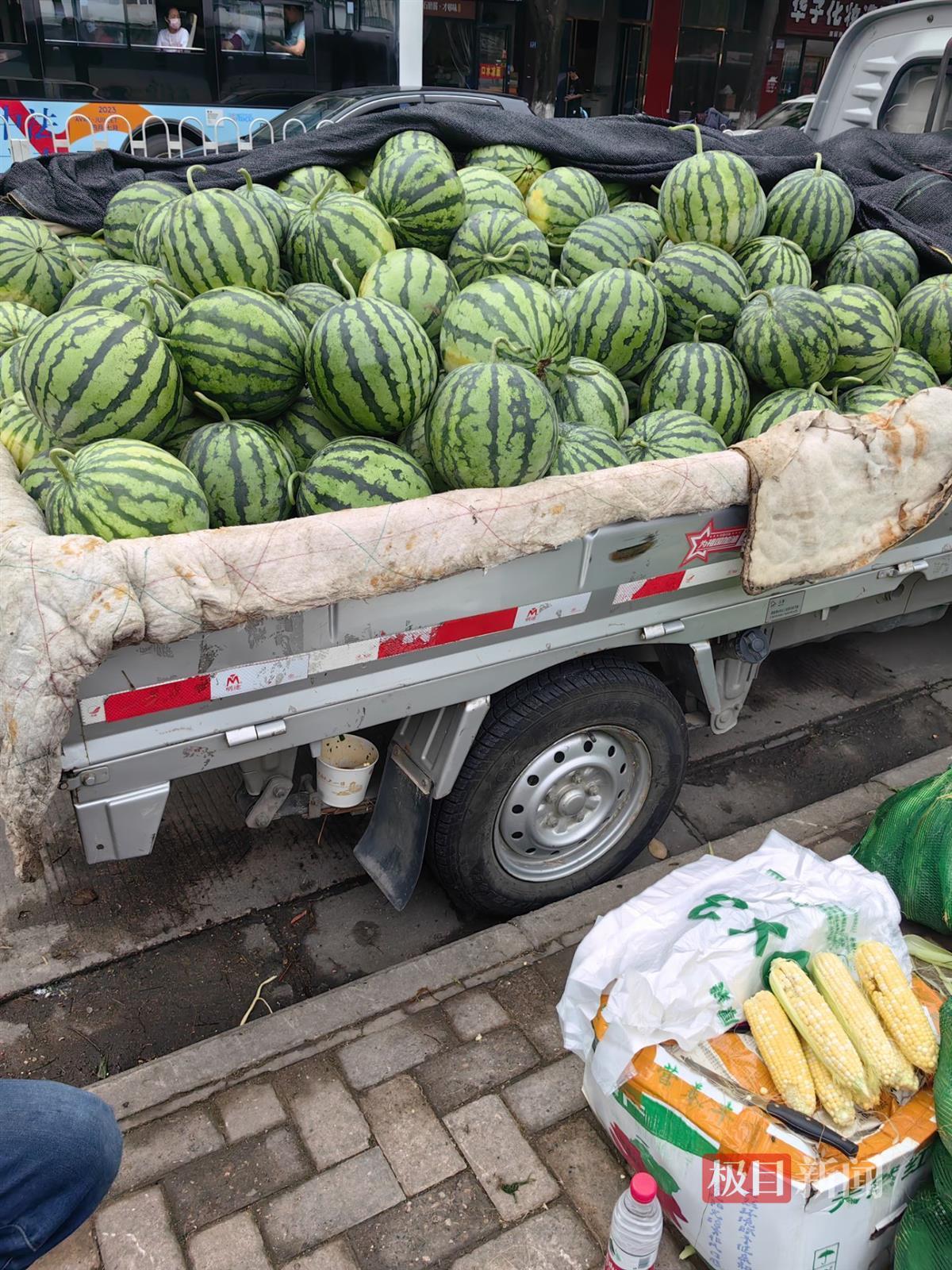 “我们这是从河南运过来的新鲜西瓜,刚采摘不久,数量大,价格也便宜。”6月27日傍晚,在汉口冬梅街的路边,几辆装载着水果的小货车一辆接着一辆,排着队售卖。其中,西瓜是货量最大的品种。