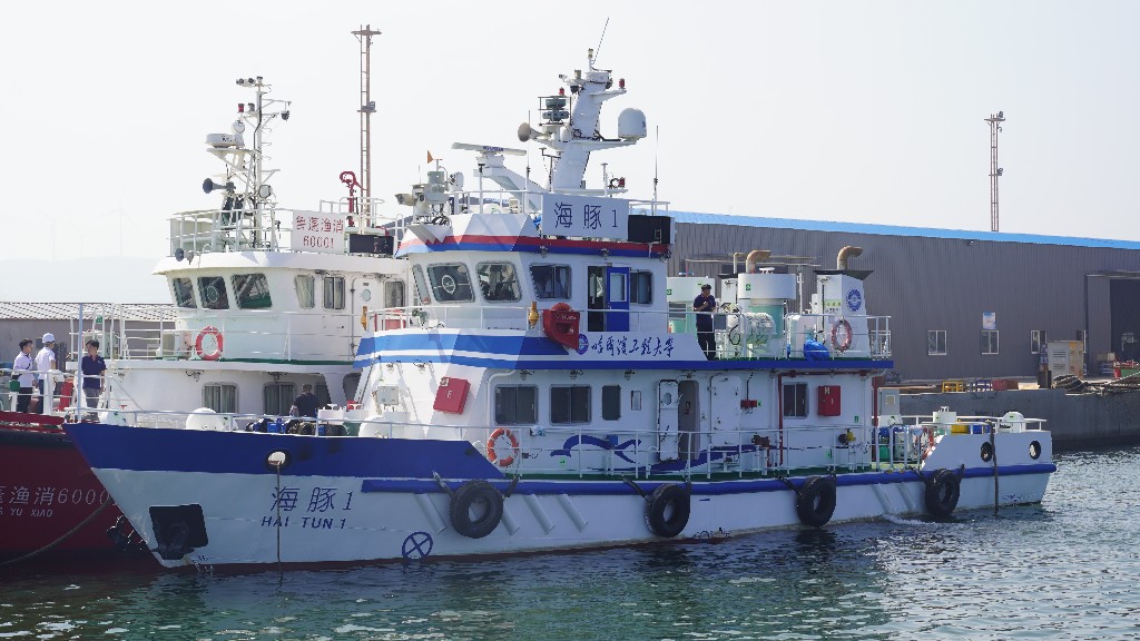 夏桂华介绍,该船由哈尔滨工程大学智能科学与工程学院科研团队联合校内多个涉船海学院自主研发,实现了船舶总体、动力、电力、推进、导航、操控、感知等一体化系统的智能化水平提升,在工信部、科技部和青岛西海岸新区、古镇口核心区等相关科研项目支持下,委托蓬莱中柏京鲁船业公司历时3年建造完成。
