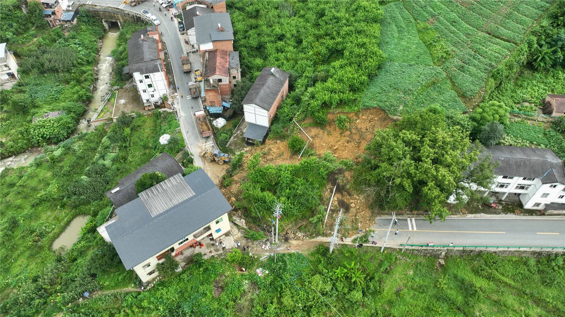7月4日,重庆云阳县平安镇龙塘社区18组出现山体滑坡。来源:“云阳微发布”微信公号