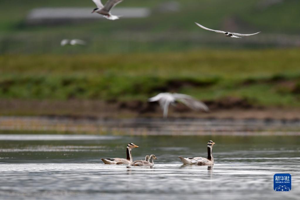 夏季,在平均海拔3500多米的甘肃省甘南藏族自治州碌曲县尕海湿地,各种鸟儿翩跹飞翔,绘就一幅美丽的生态画卷。