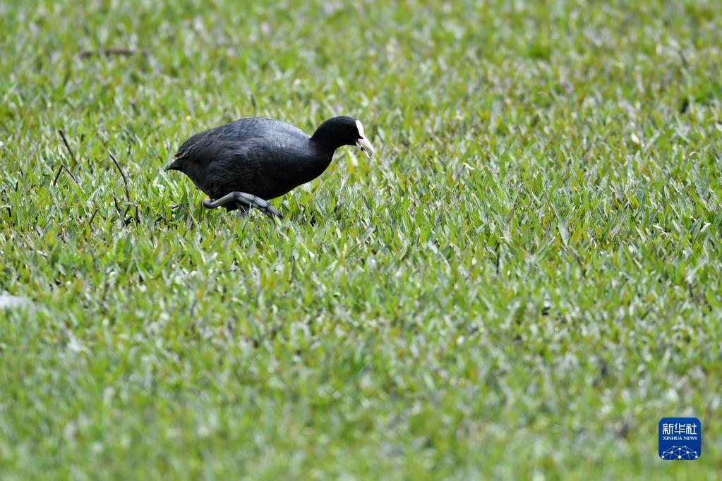 这是在尕海湿地拍摄的骨顶鸡(7月7日摄)。
