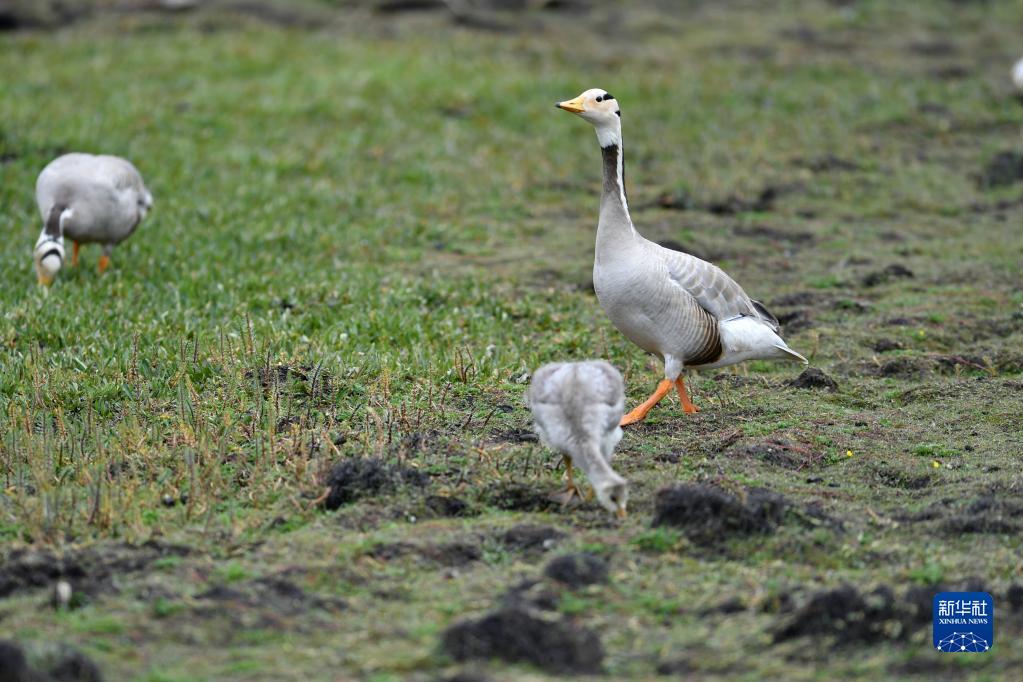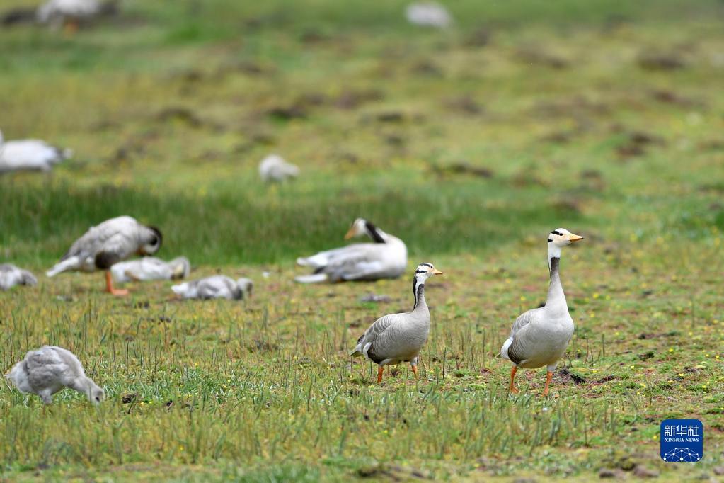 这是在尕海湿地拍摄的斑头雁(7月7日摄)。