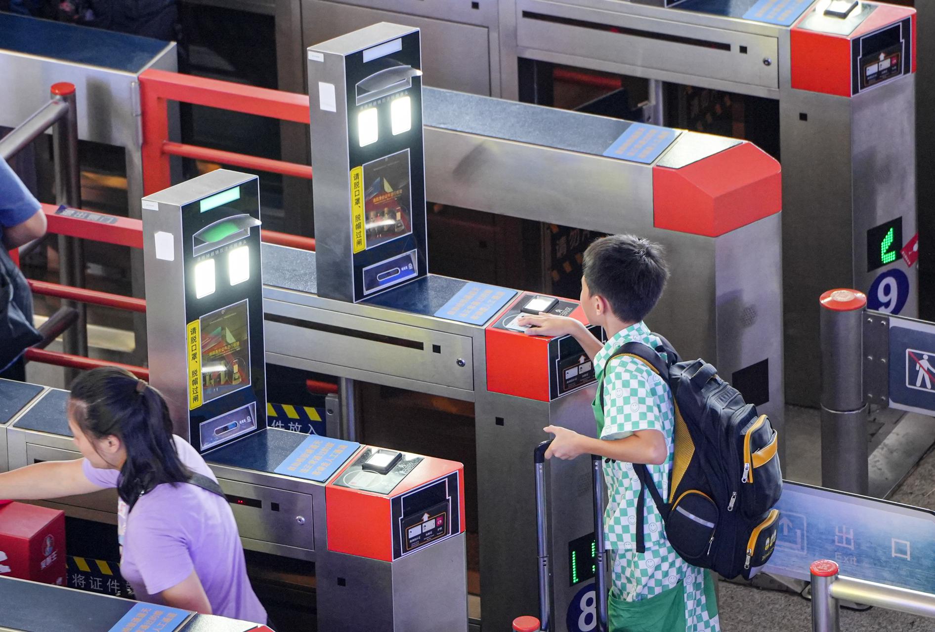 记者在进站大厅的闸机处也见到,不少旅客在用自己的身份证扫验闸机后,带着孩子一起过了闸机,也并没有工作人员在现场一一查验。还有一些带了相关有效身份证件的旅客,选择走两边的人工通道,工作人员在查验了证件后顺利进站了。