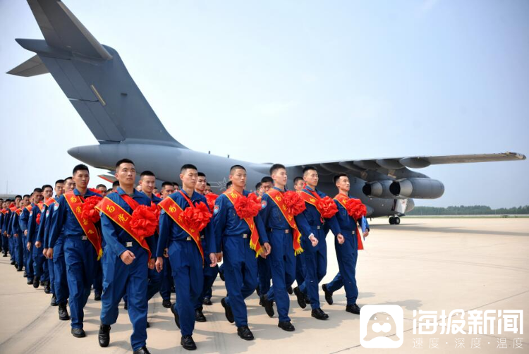 7月20日,在空军某机场,来自山东、河南两个省新录取的数百名飞行学员集合出征,乘坐鲲鹏运-20,飞往空军航空大学报到。