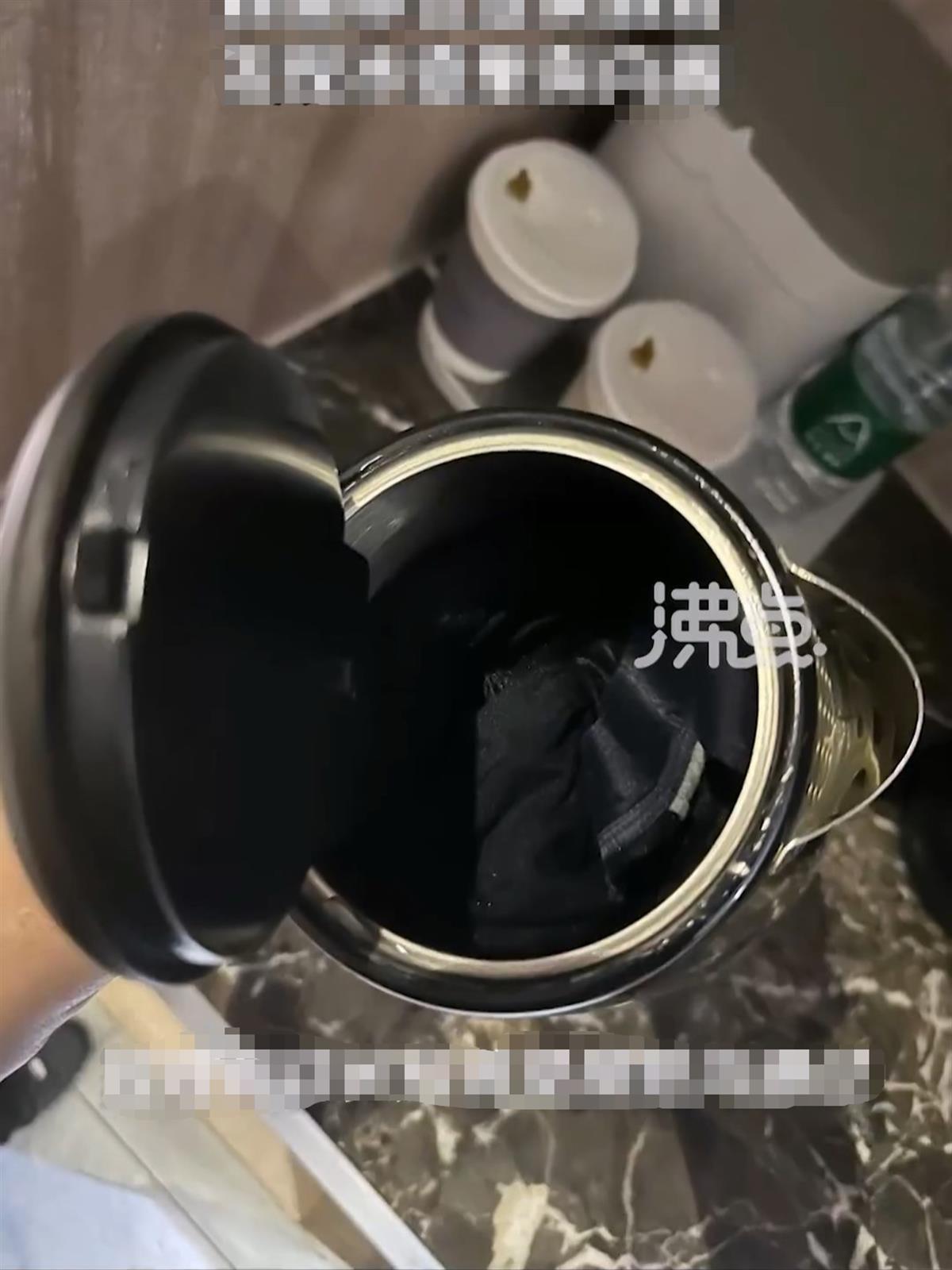 网友称酒店水壶中有内裤(截图自沸点视频)