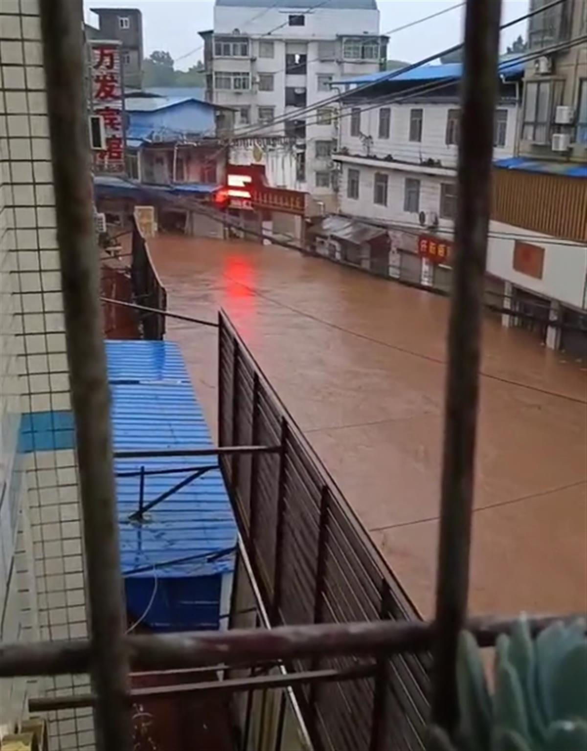 据当地网友发布的视频显示,潼南区塘坝镇小学校附近洪水浑浊湍急,居民楼已有半层楼被淹。在附近居住的邱先生向极目新闻记者证实了视频的真实性,据他介绍,因塘坝镇小学校地势比较低矮,街边有半层楼被淹。