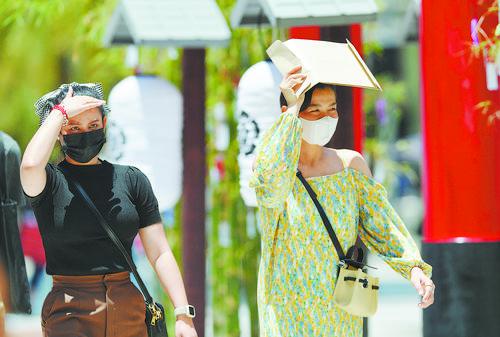 今年6月以来,赤道中东太平洋海表温度明显上升,目前已进入厄尔尼诺状态,全球多地遭遇高温天气。由于今年厄尔尼诺现象出现较早,发展空间大,如发展成强厄尔尼诺,可能会带来全球气温的新高峰。图为在泰国曼谷街头的行人(资料照片)。新华社发(拉亨摄)