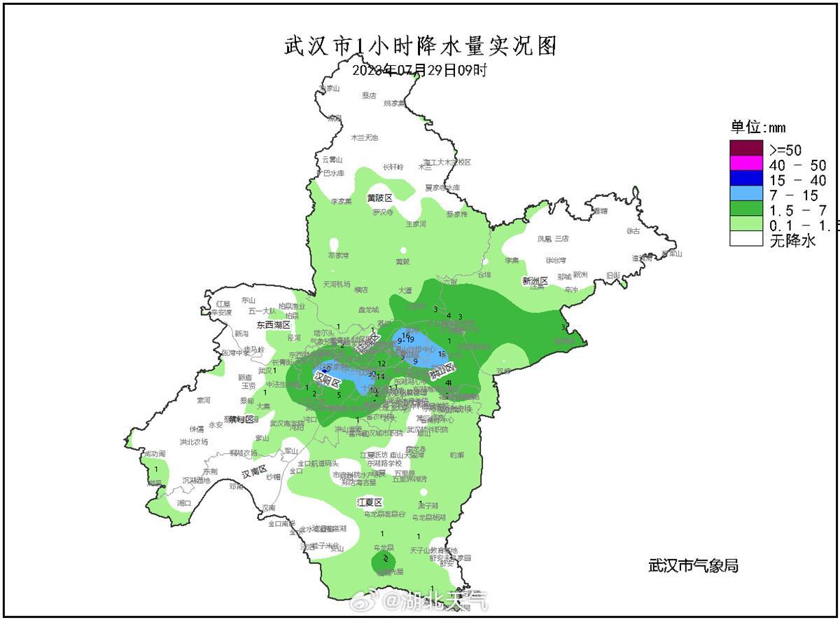 还有部分地区下了暴雨,7时至9时许,在武昌粮道街武汉十四中学附近2小时降下50毫米,而100毫米>24小时雨量≥50毫米就是暴雨,所以足见此处雨势之猛烈。